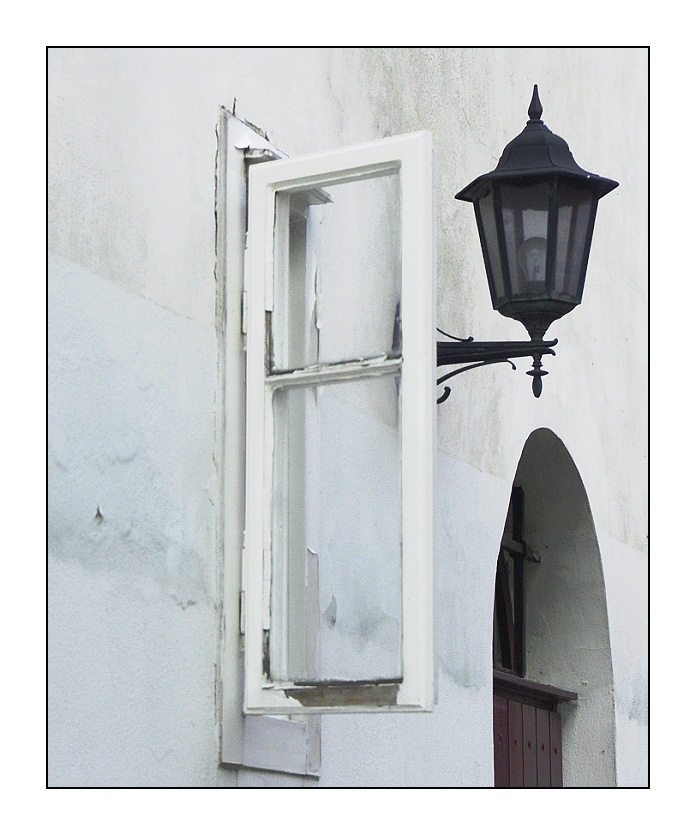 Proč ta lampa roste z rámu toho okna? A doprava by to taky padat nemuselo...